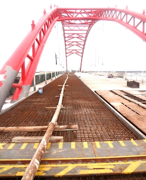With care and support of the group leadership and under the efforts of all colleagues in Panjin Yongyuan Construction Company, Panjin 300,000-ton wharf was completed 3 months ahead of the due date specified in the contract at 12:30, August 24, 2014 upon pouring the last tank of concrete over the steel trestle deck with celebrating firecrackers and fireworks resounding across the 300,000-ton wharf construction site, after 17 months of unremitting efforts of the project department and all involved staffs. The project department will also lead all the staff to keep working and fix defects in materials and engineering as soon as possible, so as to have the wharf project meet the acceptance conditions.